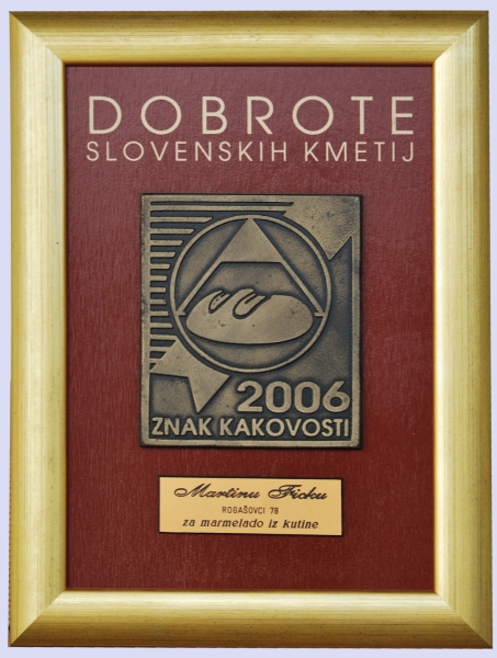 Zelo smo ponosni na našo Kutinino marmelado, ki je prejela tri leta zapored zlato priznanje ter zato prejela znak kakovosti. Ta trend se pri tem izdelku nadaljuje, saj še naprej prejema zlata priznanja.
